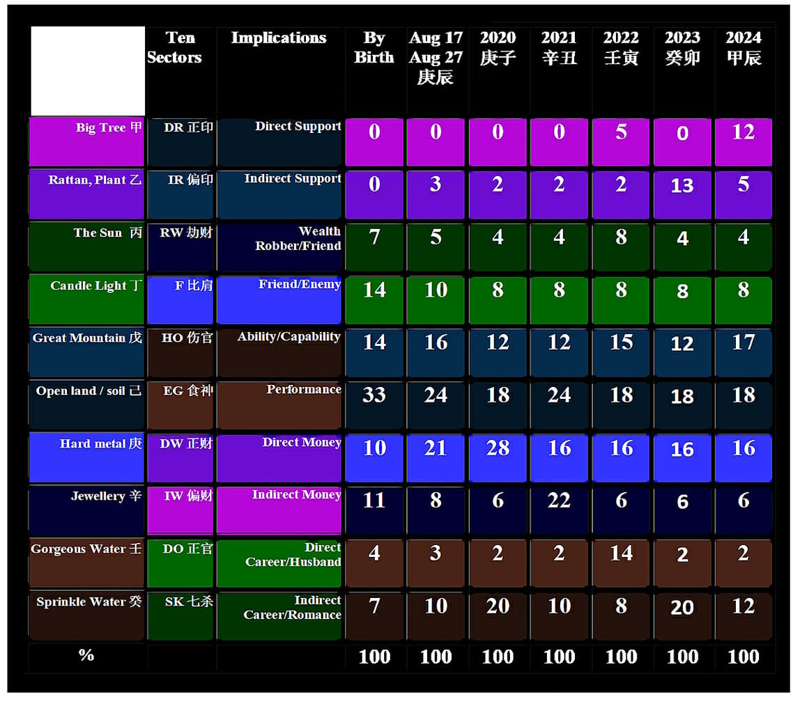 - Attached is the person’s BaZi breaK dowN in %