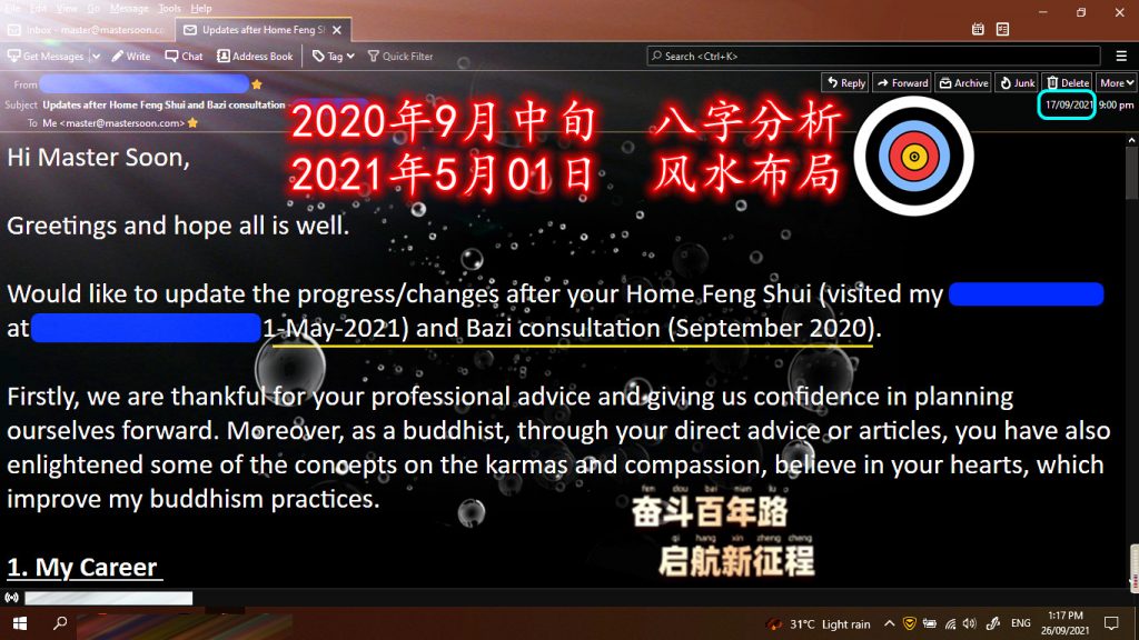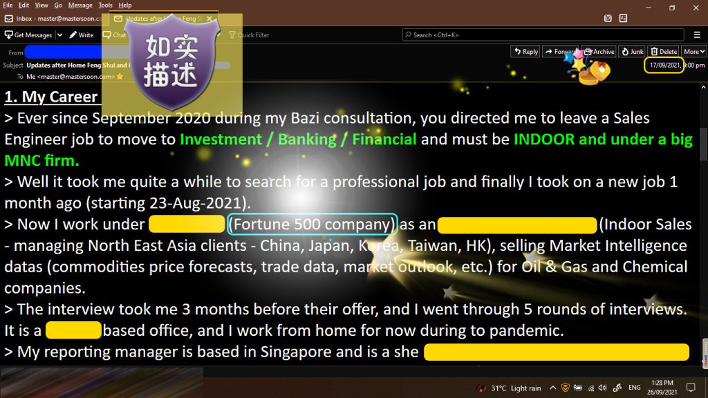 - He mentioned that he got a 50% increment for his basic, 115 days after the feng shui audit.