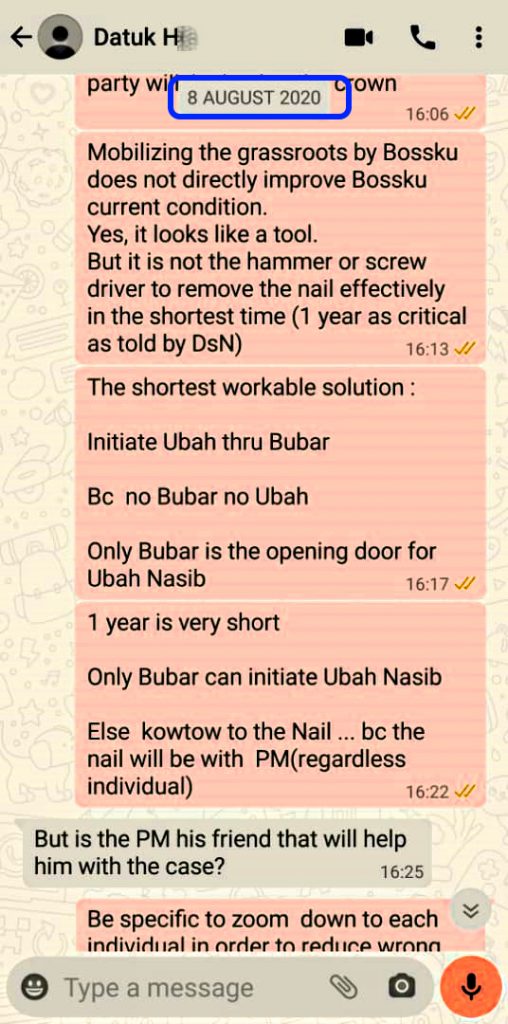 - On 08 Aug 2020, one of his inner circle members consulted me and asked me for comments.