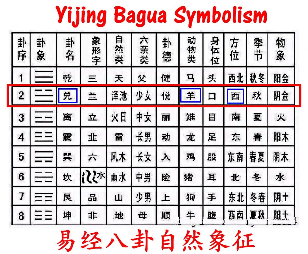 - GOAT…? Yes, Number 2 is for Goat 羊 in Yijing 易经;Moreover, this is the GOAT in the WEST with 2 horns (兑,上两点为羊角)as sharp weapon.