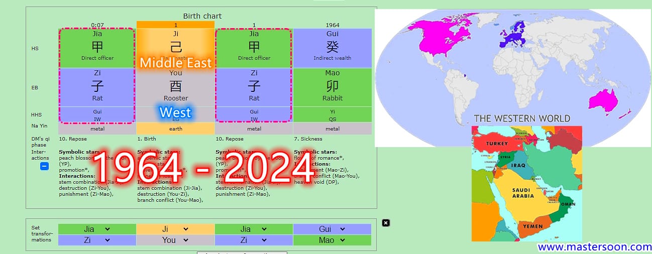 1. Both charts (1964 & 2024) shared the same Month Pillar 月柱 and Time Pillar 时柱.