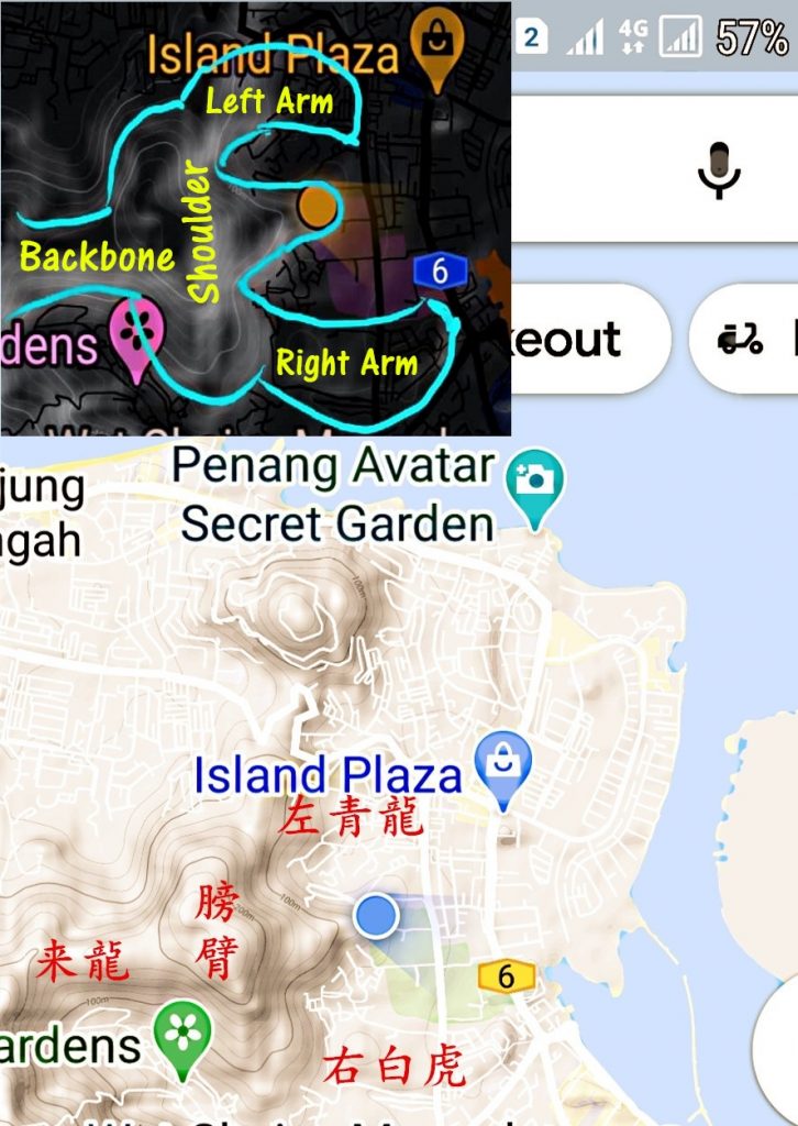 - The tomb was purposefully tilted to tap Tokun Hill 卓坤山 in Bukit Mertajam, 22 KM away & across Strait of Malacca as shown below.