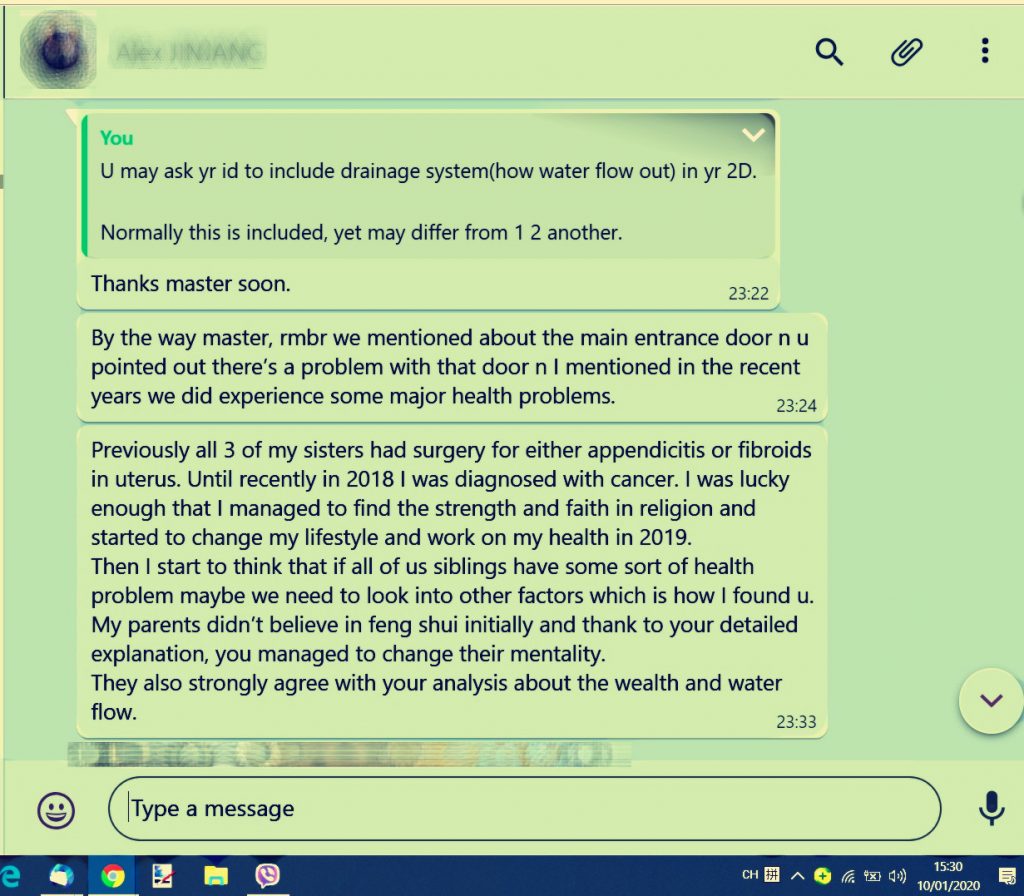 1. Health issue is one of the major reasons for engaging my metaphysics service, apart from renovation, career advancement, wealth accumulation, relationship, romance,  marriage, family harmony or even demonic possession.