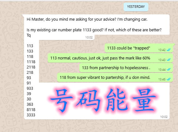 - He wanted to buy a new car and seeking my opinion about car plate number.